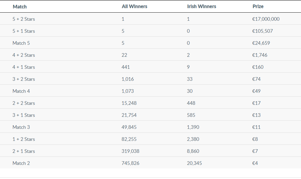 Prize breakdown.