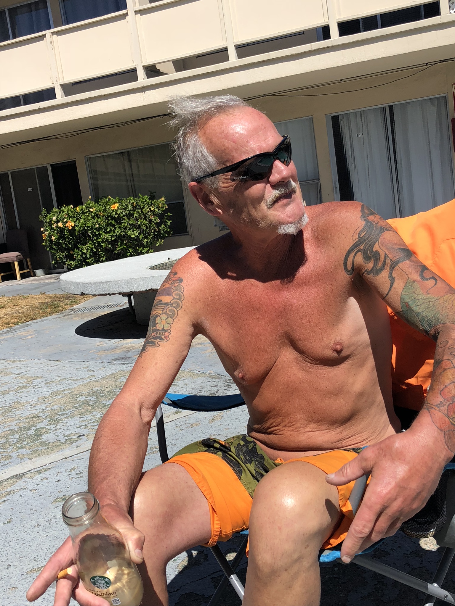 He’ll be 62 in April, his birth name is James but you’ll never get his attention that way, he goes by Jimbo. He’s still getting tattooed, too, he’s currently working on his left arm sleeve—a giant, naked mermaid in full color. He’s a Denver Broncos fan which means during football season, his mohawk is bright orange, yeah, the senior citizen rocks a six inch mohawk, too. He’s one of the coolest, most sincere and kind hearted individuals I’ve ever crossed paths with—I’m glad we met.