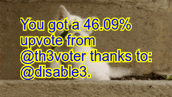 You got a 46.09% upvote from @th3voter thanks to: disable3!