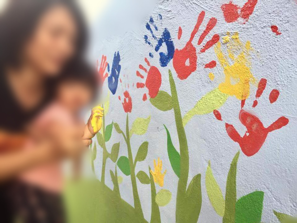 Wall painting using palms of many - street photography by @juliank for @photocontest.
