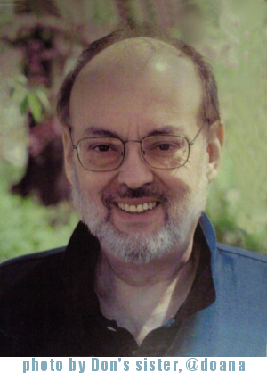 Tests showed that he had a blocked duct in the pancreas, which was causing the jaundice. It was keeping his own pancreas from releasing insulin and other necessary things, and we finally started getting answers. Amazingly, they were able to sedate him, pass a tube down his esophagus, and place a stent into the pancreatic duct without any incision required! I am so amazed at what doctors can do nowadays. When the stent was inserted, the doctors took a biopsy of tissue around the blockage. That bought him some time while additonal tests were performed. The diagnosis came back that it was, indeed, Pancreatic Cancer, one of the forms that is often inoperable because of the complexity of the ducts and blood vessels around the organ. This was the situation in Don's case, and he was given three months to live. The doctors' prediction was very nearly correct, and my Love passed on January 31, 2010.