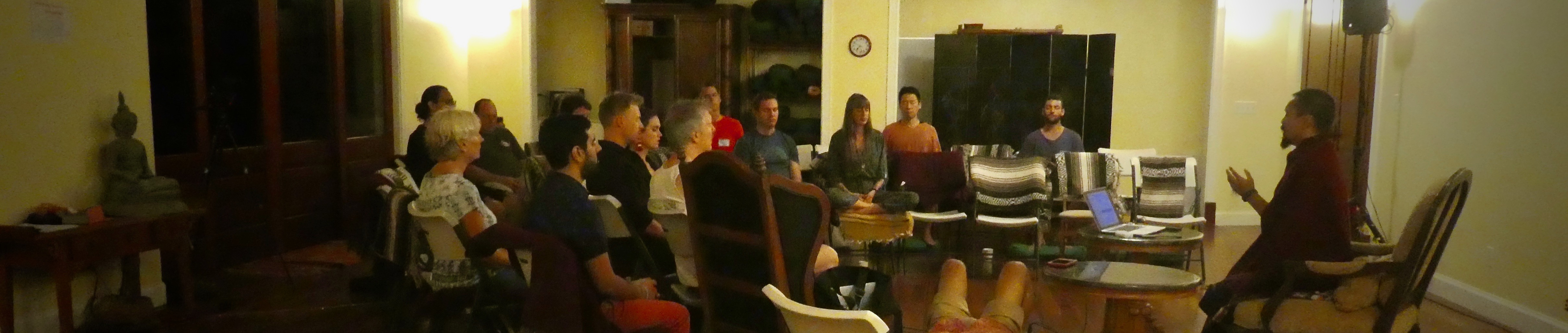 Chogyal Rinpoche, a Tibetan Buddhist, joined us from Nepal as a participant. While learning to apply Western lucid dreaming techniques to advance his own practice, he also shared his wisdom in the yogas of dream and sleep with us. Here he is guiding the class in a mantra meditation (below).