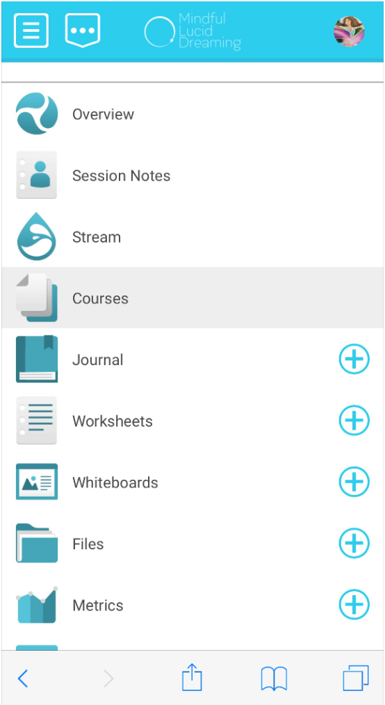 Below, a screenshot of the mobile application for Mindful Lucid Dreaming, online workshop.