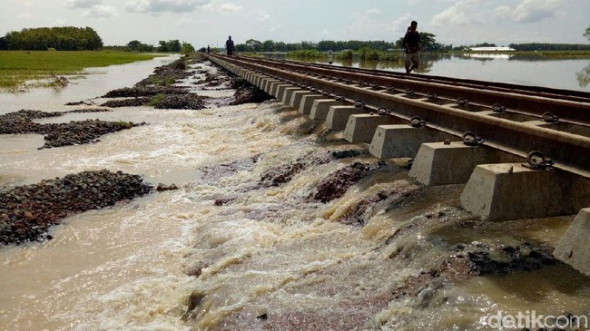 Kebanjiran Kali Cisanggarung, Kabupaten Cirebon, Jawa Barat, ngeculake jalur sepur antarane Brebes-Ciledug Cirebon Insurance Station. Akibaté, dalan iki lumpuh. Direktur Umum Kereta Api ing Kementerian Perhubungan, Zulfikri nerangake.