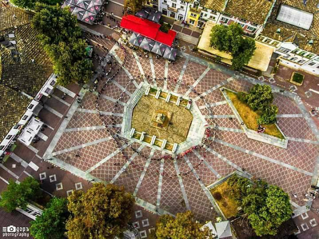In the middle of the square there is a stone monument. This monument is the axis of the clock and thus "The Time Square" becomes a huge Solar Clock!
