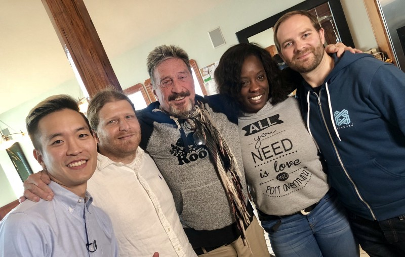 Luxcore team members, including CEO John McAfee, on location for the InnovateTV shoot