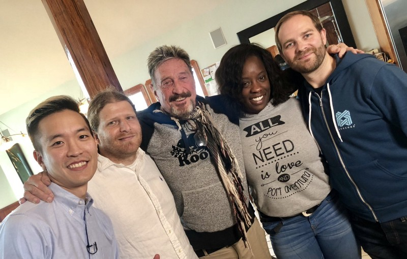 CEO John McAfee, COO Guillaume H. (Arsonic), CFO Frederick A. (angersf) and CSO John Kim (johnnystar) were on-hand for the taping. Both McAfee and Kim will be appearing on camera in the TV spot alongside previously-taped content from CGO Cosmin Tudor (anorganix).