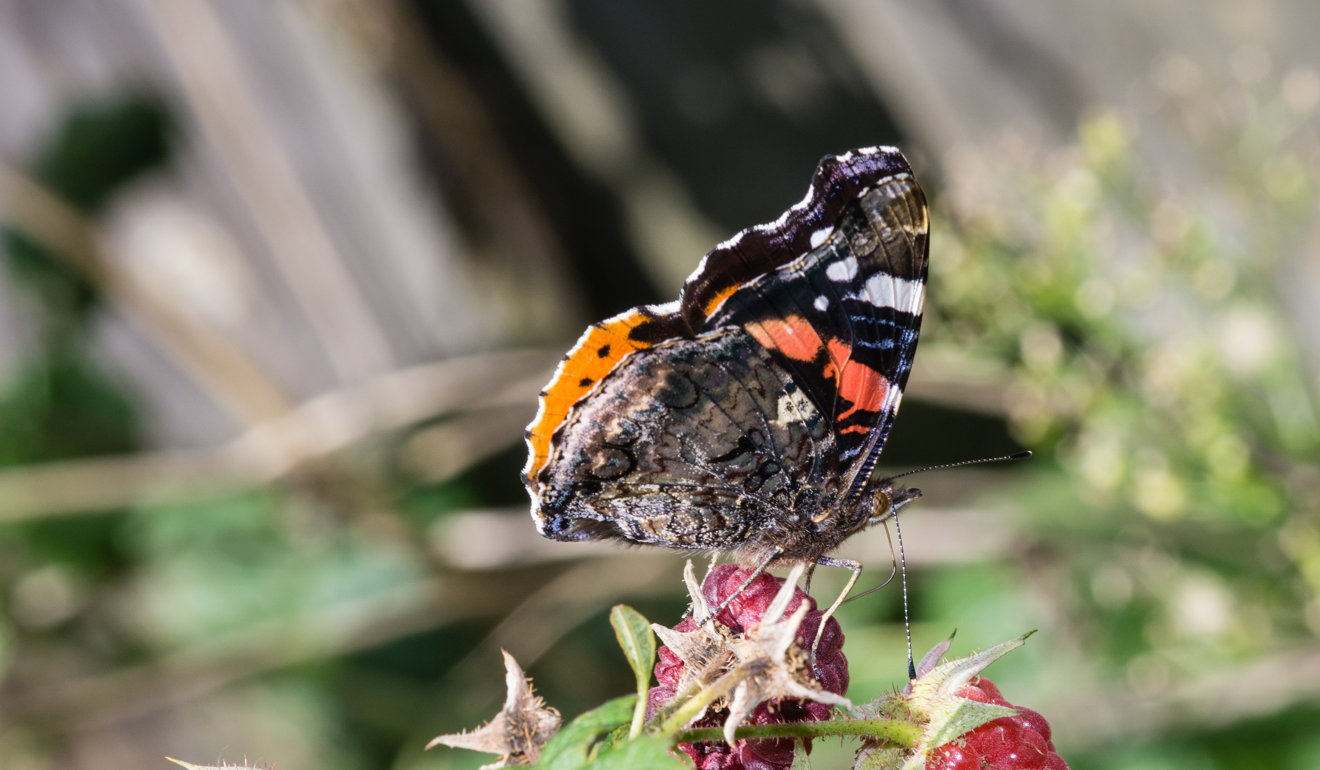 butterfly eating raspberriessteemCreated with Sketch.bokeh (55)in #macrophotograhy • 8 years ago (edited)one of the reasons why you shouldnt pick all the fruit from the bushes ;) image created with the Sony A6000 + rokkor 50mm 1.7 #macrophotography #insects #bokeh #photography