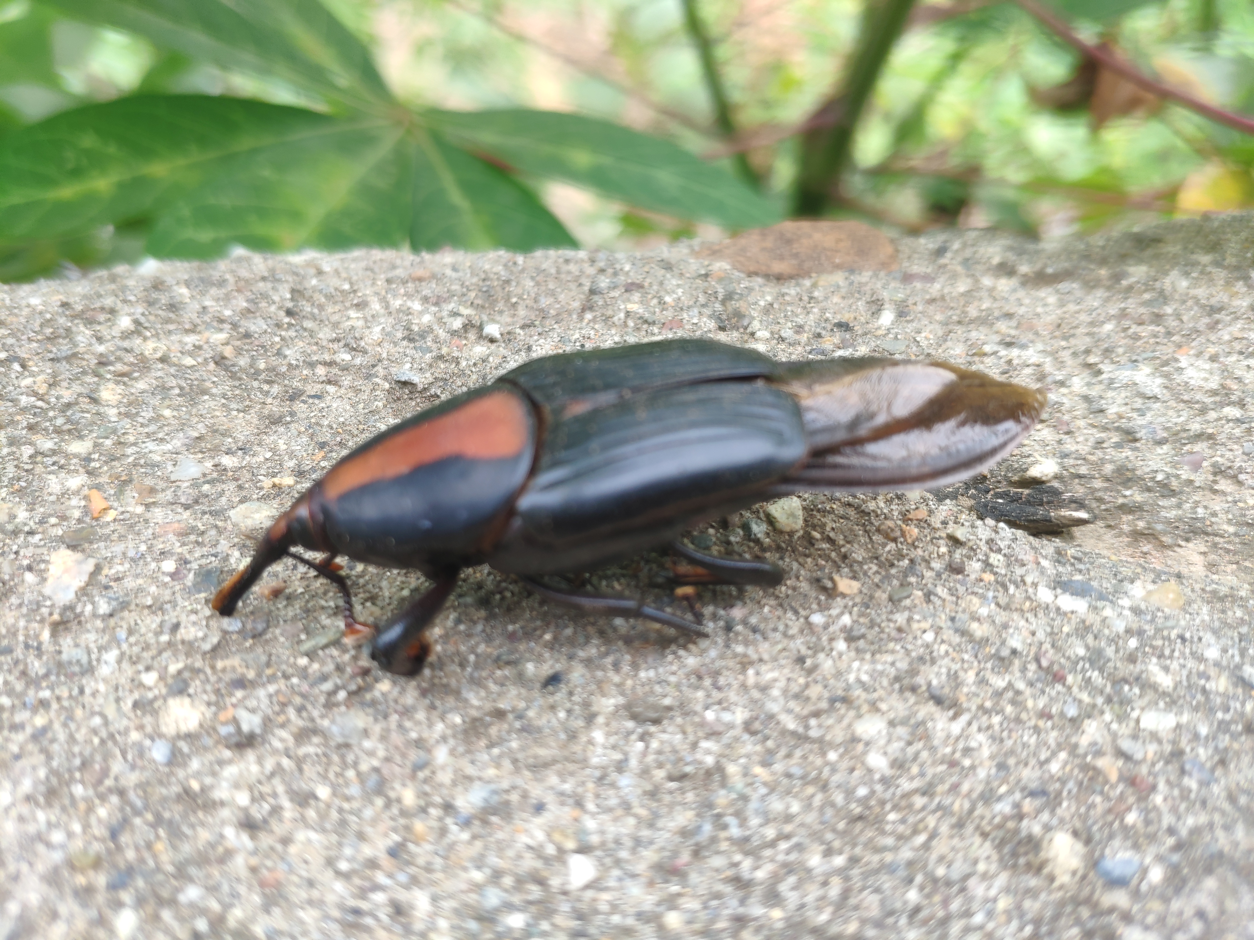 The sago beetle is a type of beetle that is widespread from India to Sauwa, following the spread of its host. The body is reddish brown or black, the size of a walnut. Long snout tapering back and forth. The larvae are the size of a thumb, sometimes bigger