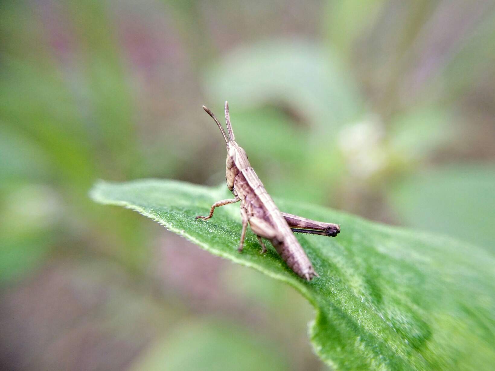 I found beauty lady beetle and little grey grasshopper. This animal landed on the leaf. I took this animal photo with my smart phone. Below you can see the photos.