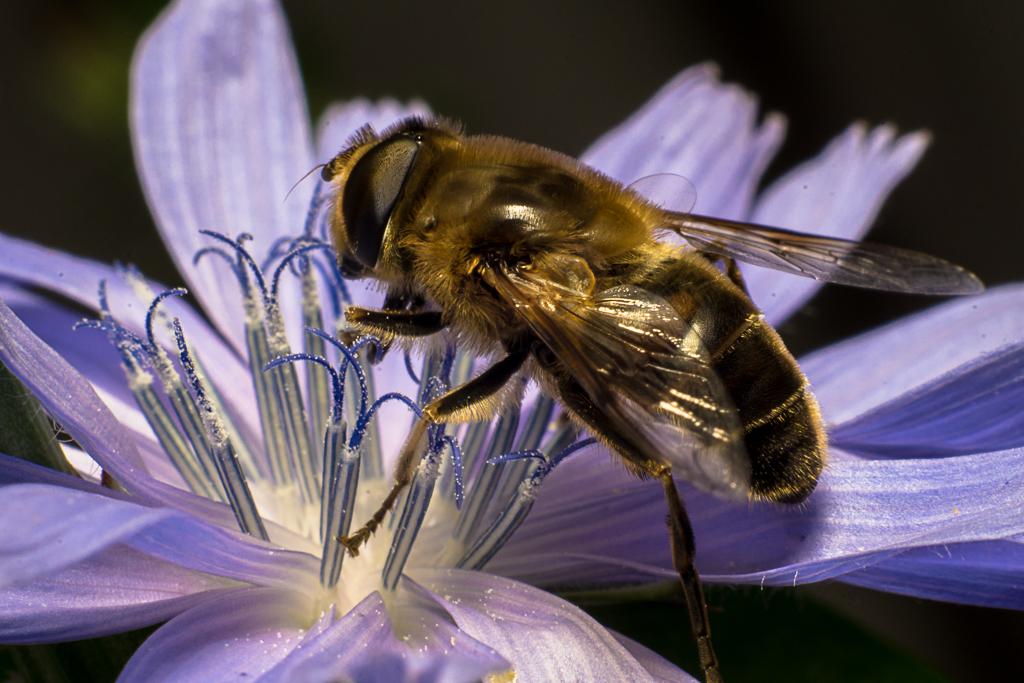 drone fly on chicory flowersteemCreated with Sketch.macrophotography (56)in #macrophotography • 8 years ago (edited)more images from the old garden , it's to hot to go out side for me . it 's a drone fly sitting on a chicory flower #1 #2 #3 #4 images created with my Sony a6000 camera + panagor auto macro converter + rokkor 50mm 1.7 #flowers #insects #photocircle #photography
