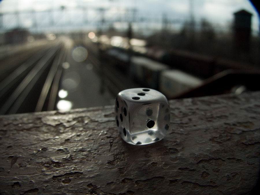I walked along the aisle above the railway at the train station and saw a dice on the railing. Probably, it was left by local Asiatic immigrants – they very often play at the station in the "backgammon" game, in which a dice is used.