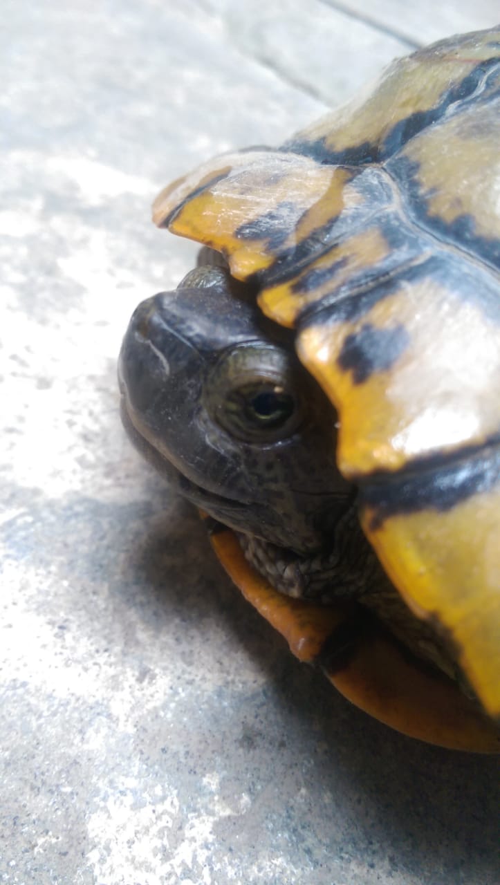 This baby turtle is so cuddly nd cute guys although it is a bit ill but still its happy to find water nd food.