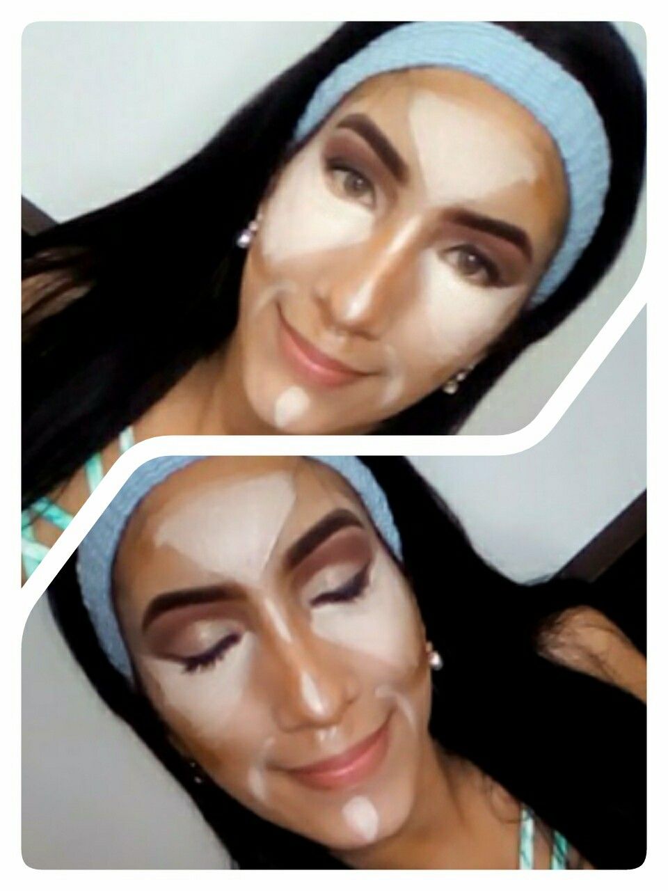 Diamond or hexagonal face: This face tends to be wider, so it can occupy the correctors to balance. If the face has more diamond shape then the cheekbones should be slightly darkened to remove volume; if it has a hexagonal shape in addition to darkening the cheekbones, the angles of the jaw also darken. For both lights: the center of the face and the inside of the jaw, to give volume. Now if in my case that is the elongated face is the techniques that they use to define the features