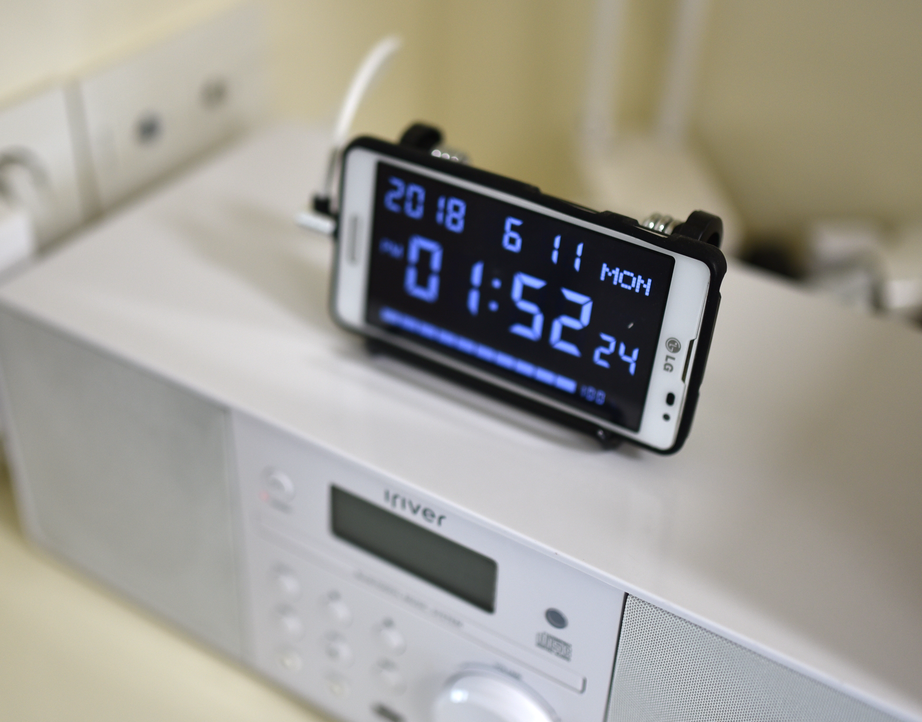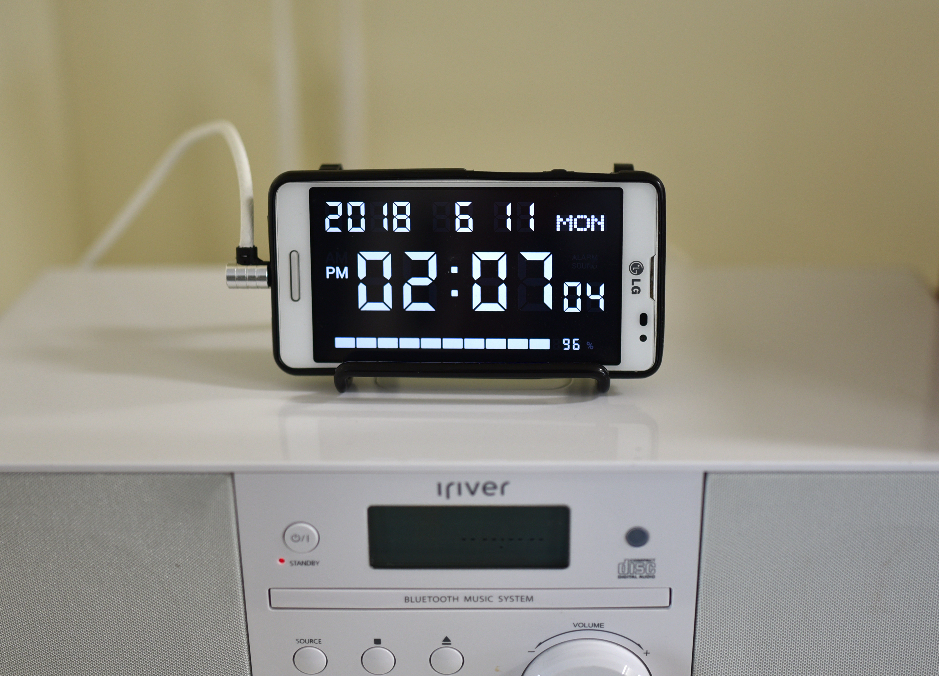 짜잔~ 아래와 같이 거치대와 충전잭의 도움으로 멋진 탁상시계가 연출이 되었습니다.