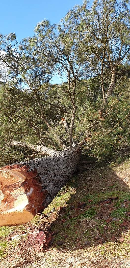 Once the bows were cleaned up and the lumber moved aside, the 10m trunk was spun around 90degrees so it could be away from the fence area and dealt with at a later stage. Luckily enough I was able to jam a log under the trunk near the centre of its mass to do so, and then drag it with the tractor.