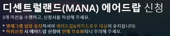 디센트럴랜드(MANA)에어드랍 신청 이벤트!!!