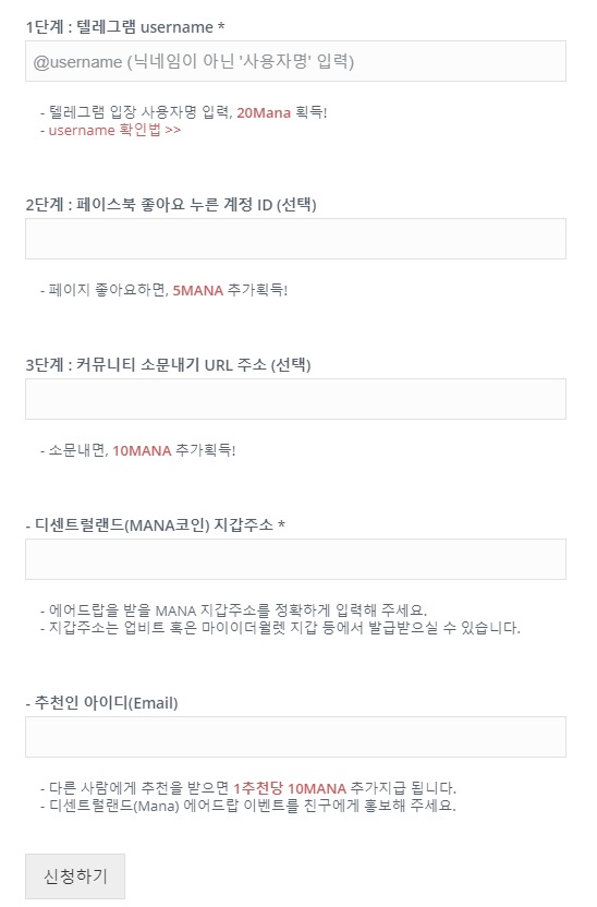 : 디센트럴랜드(MANA코인)에어드랍 신청하고