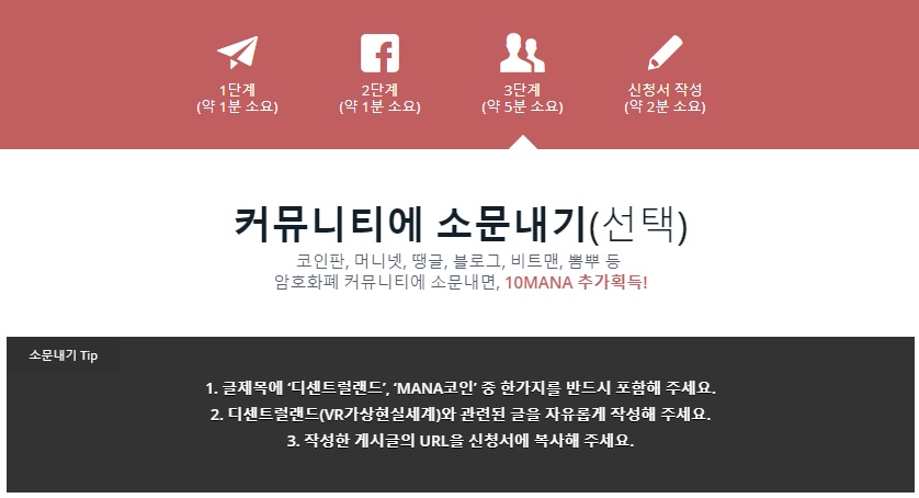: 코인판, 스팀잇, 블로그 ... 에 MANA코인 이벤트&정보 글을 올리시면 됩니다.