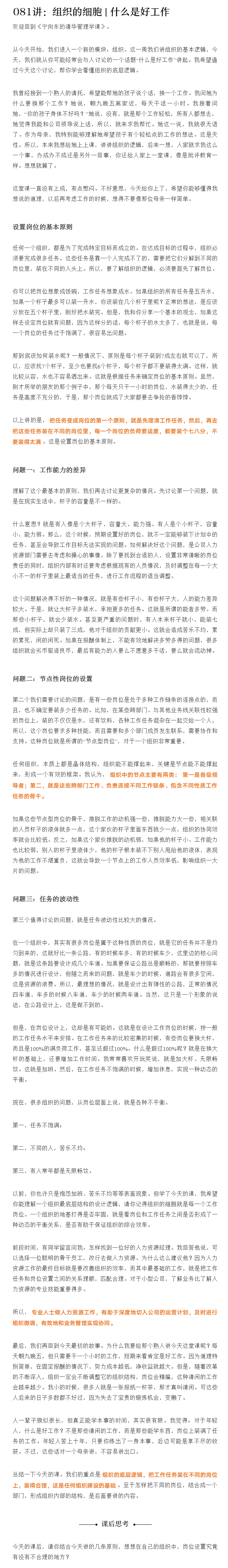 清华管理学课(八十八):081讲:组织的细胞 | 什么是好工作