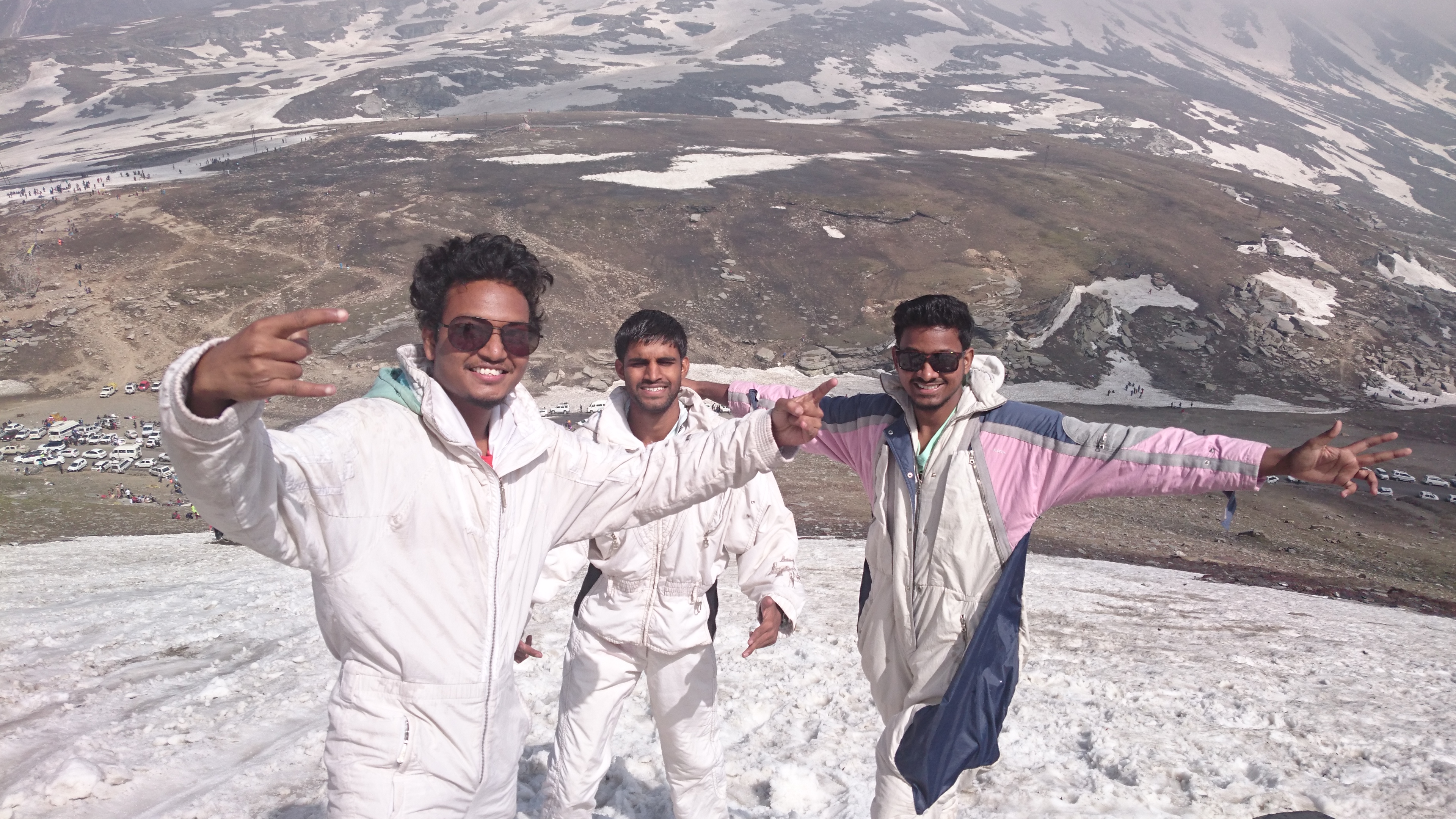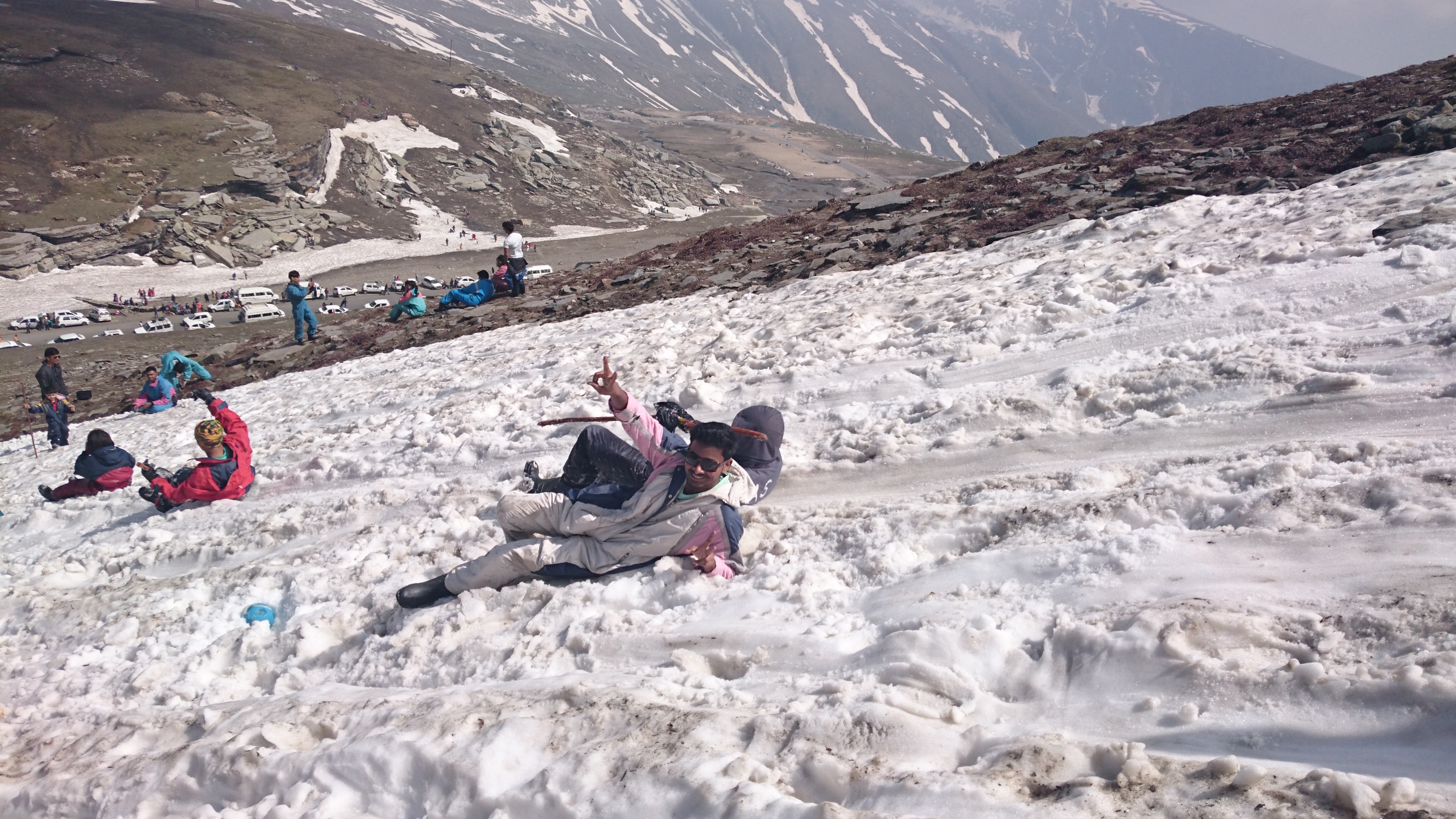 Finally we reached Rohtang pass,though there was no snowfall,but snow was spread over the entire area,we could see the clouds just moving above. We played by throwing snow on each other,we rolled over the snow .It was full of fun.Though there was cold,but it was good. there were lot of people came there.