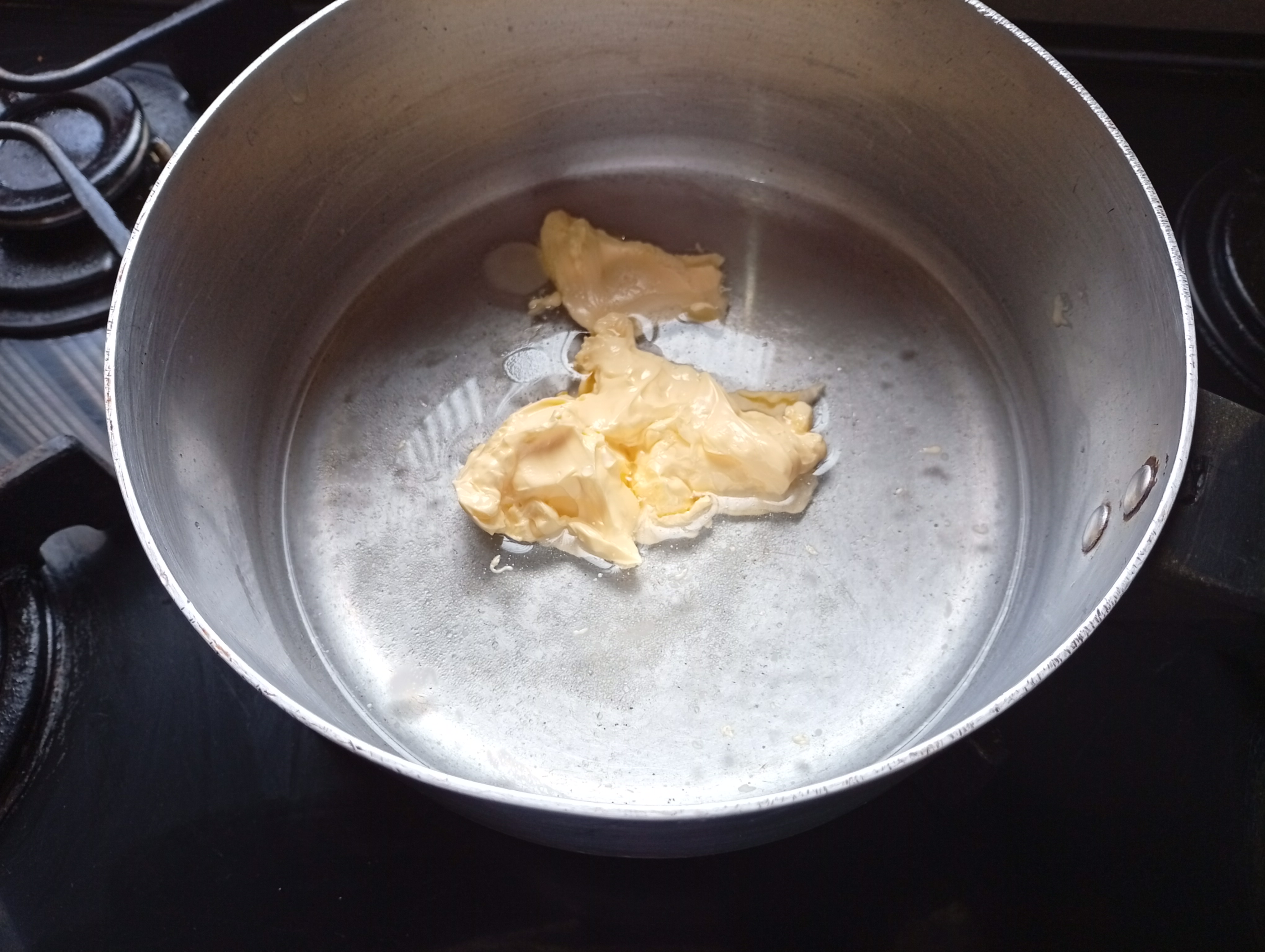 Coloqué el agua en una olla junto con el azúcar, mantequilla y sal, hasta que hierva, es un proceso muy rápido y se debe vigilar para hacer el siguiente paso.