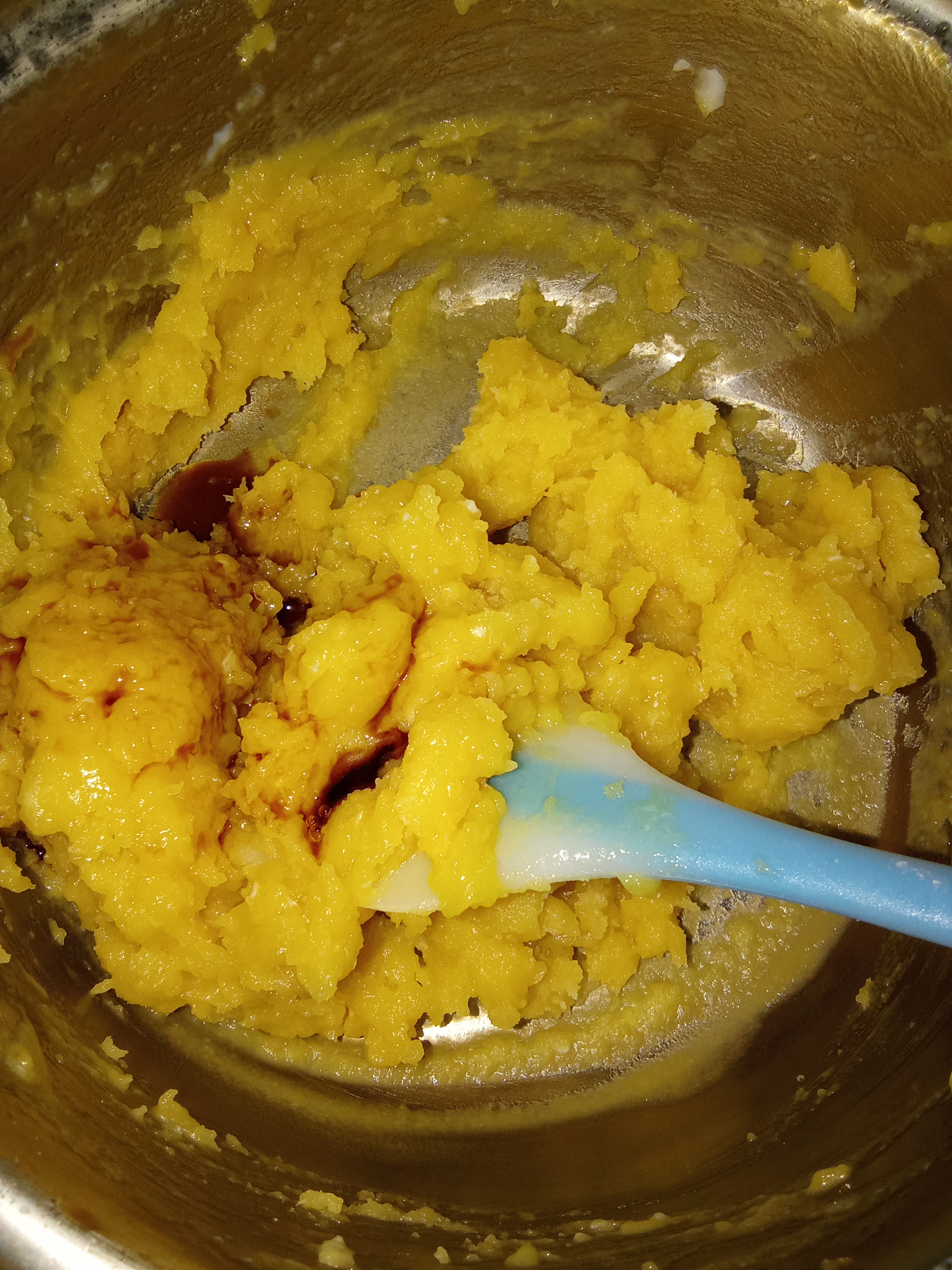 Luego remuevo en forma envolvente para intergrar el huevo a la mezcla le echo un chorrito de vainilla