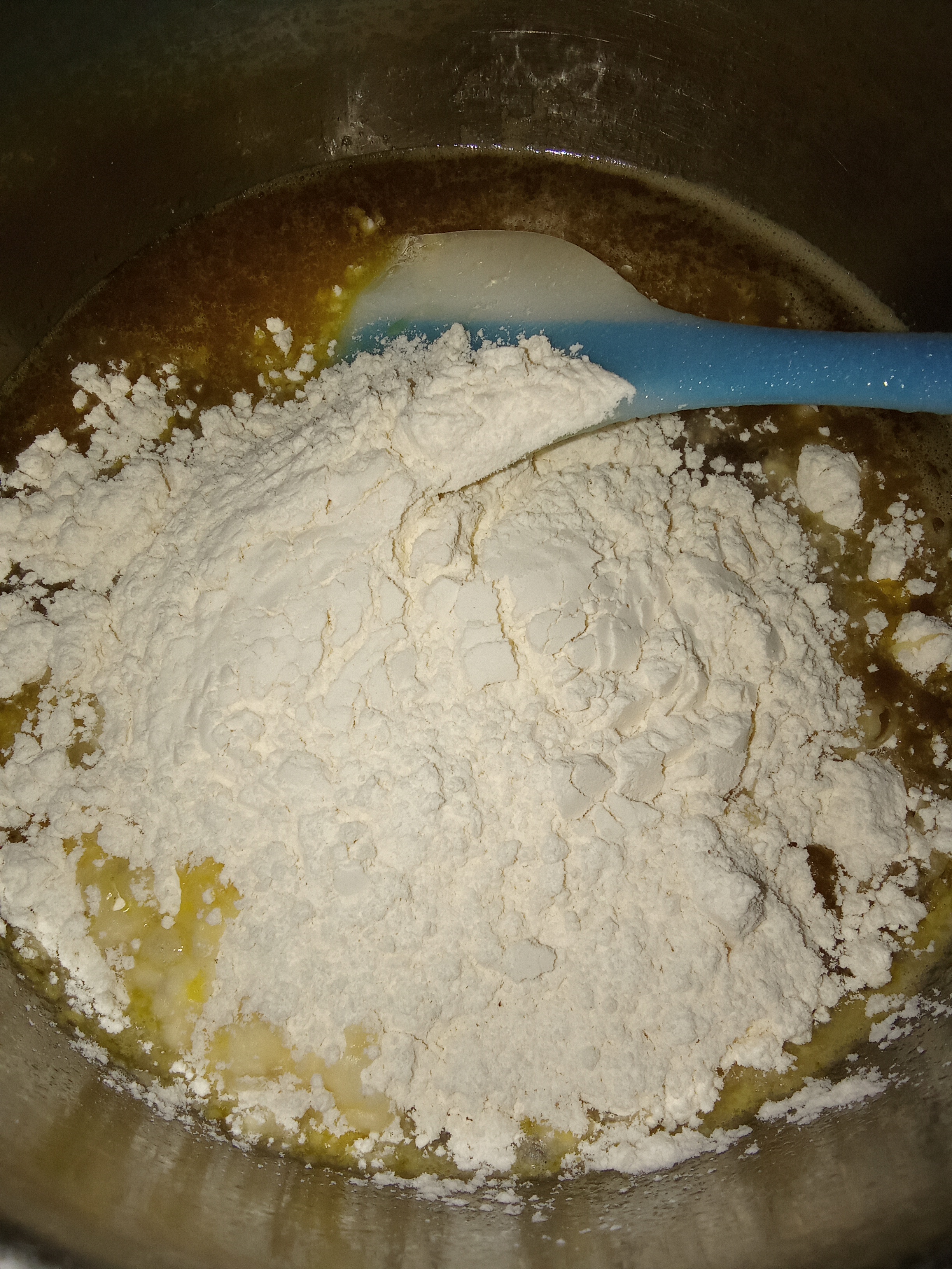 Luego al derretirse la mantequilla, la azúcar, sal y le agrego la harina