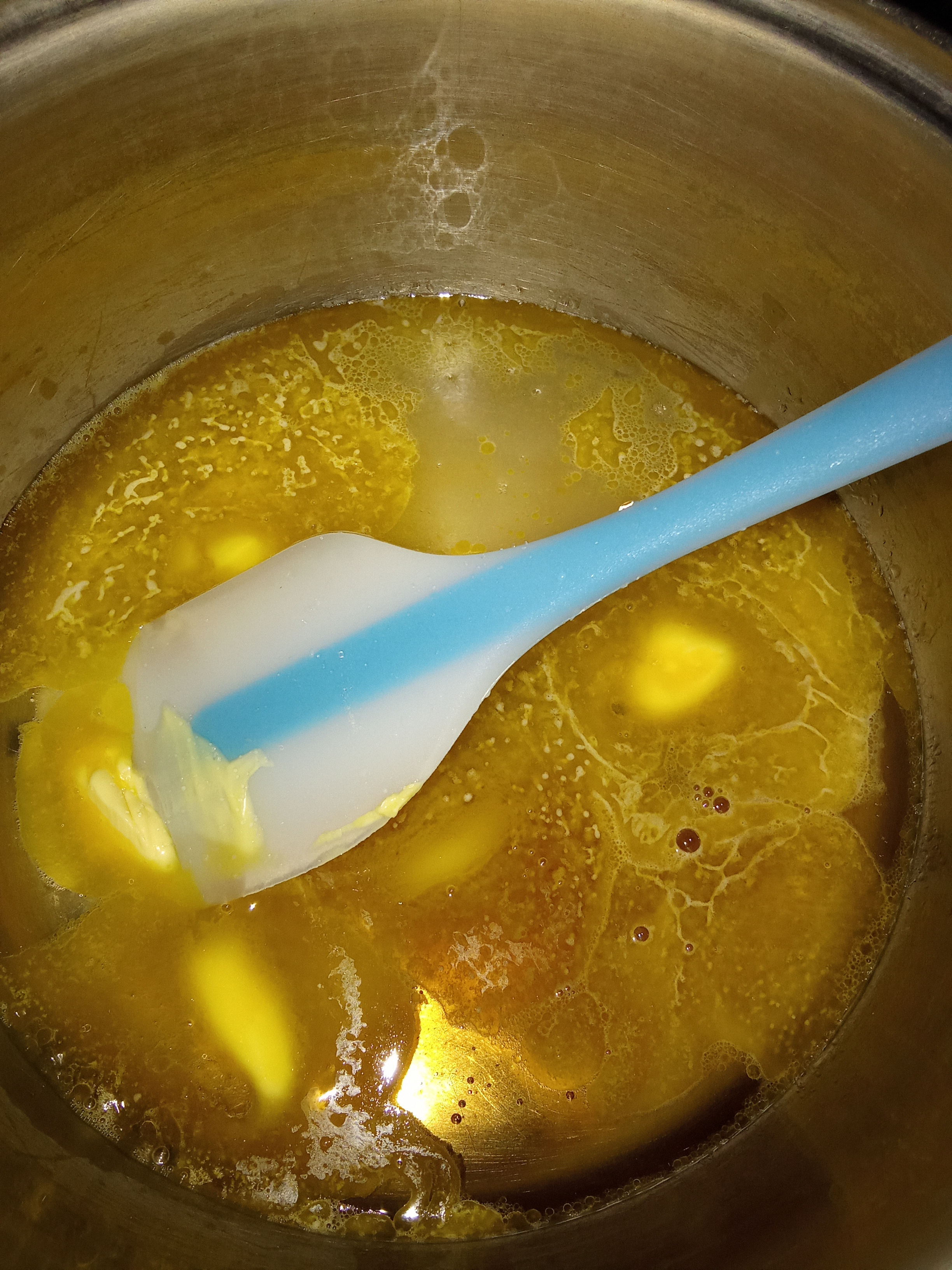 Lo primero que hice fue colocar la olla en la cocina agregué el agua deje que calentará un poquito para agregarle la mantequilla