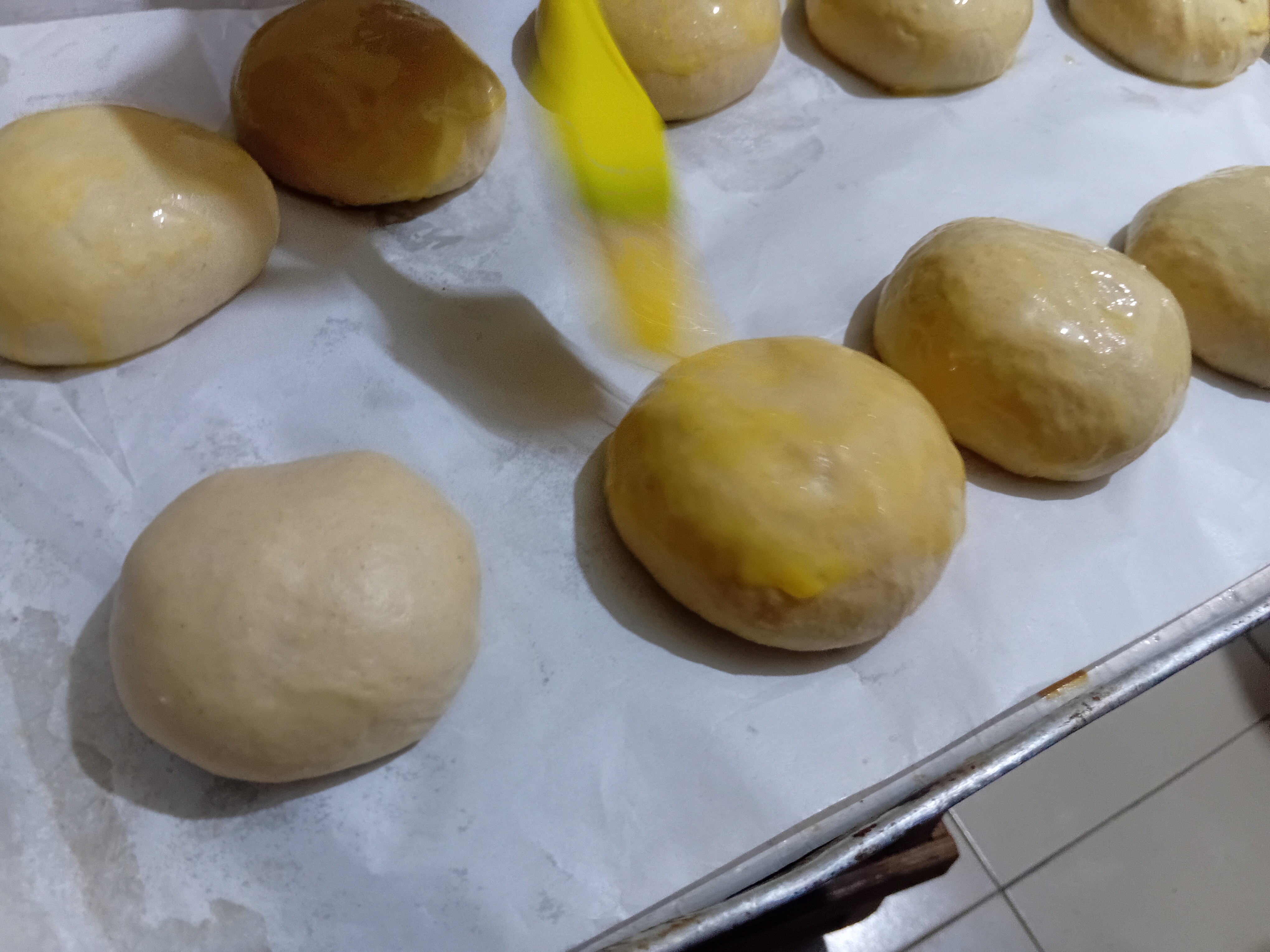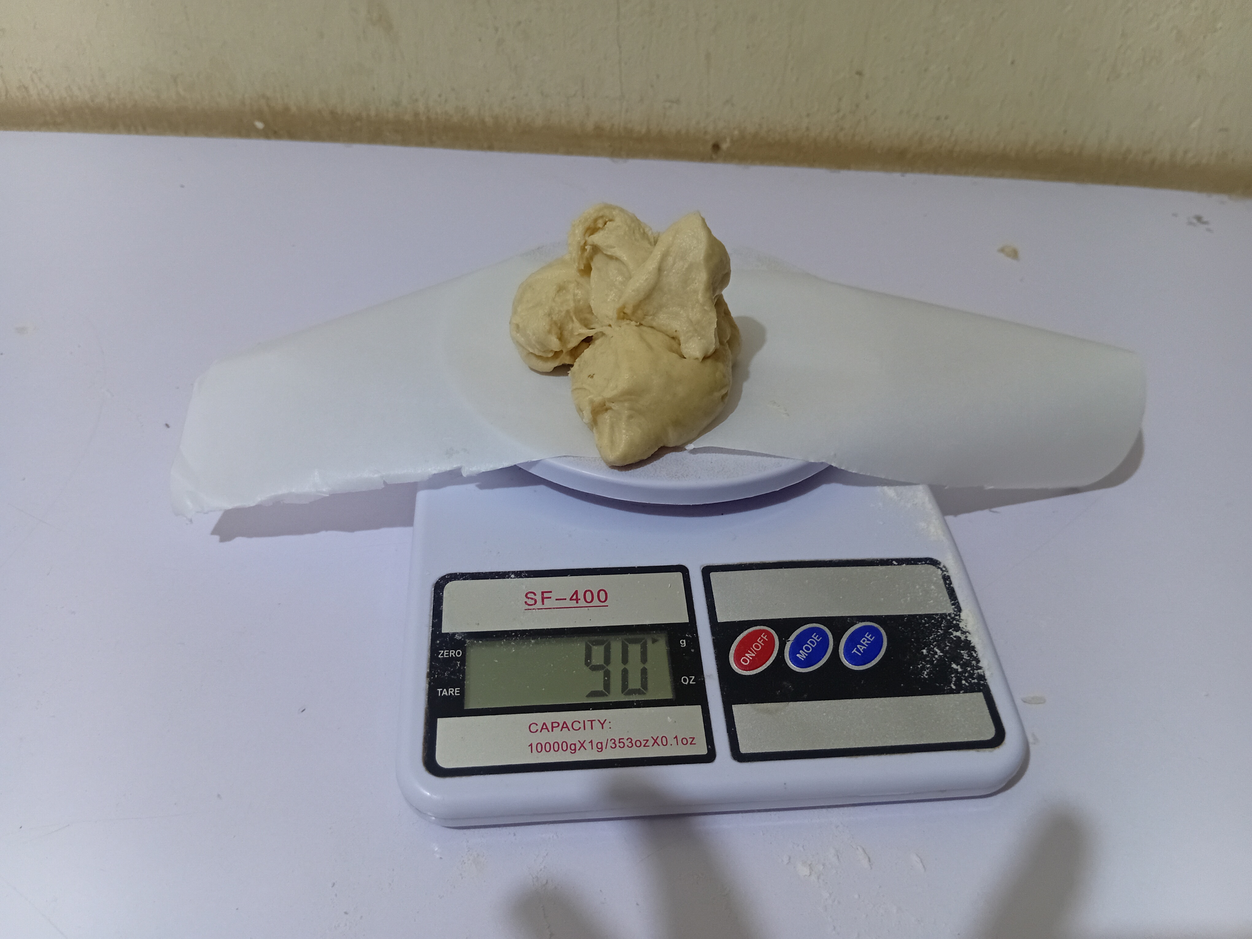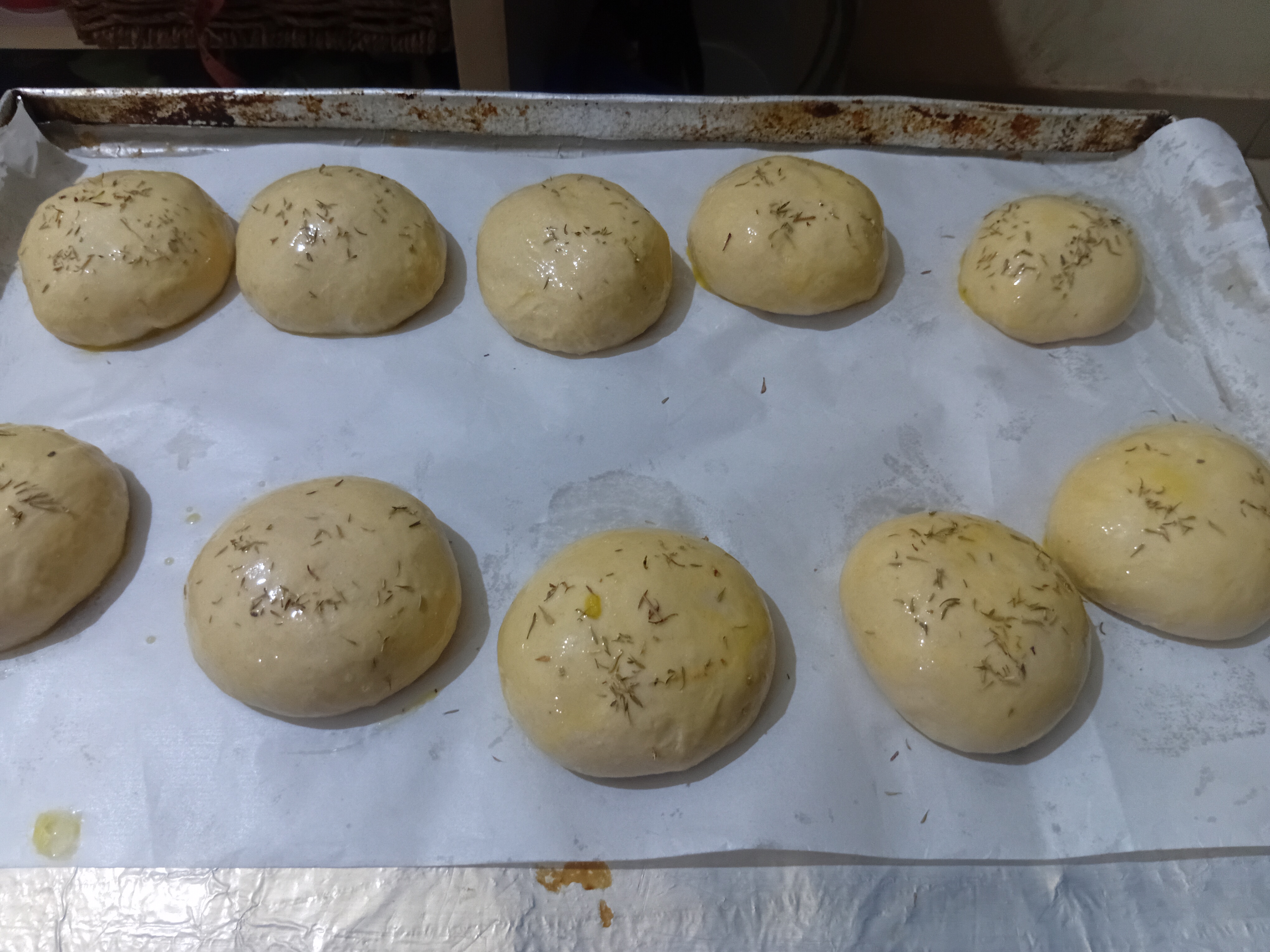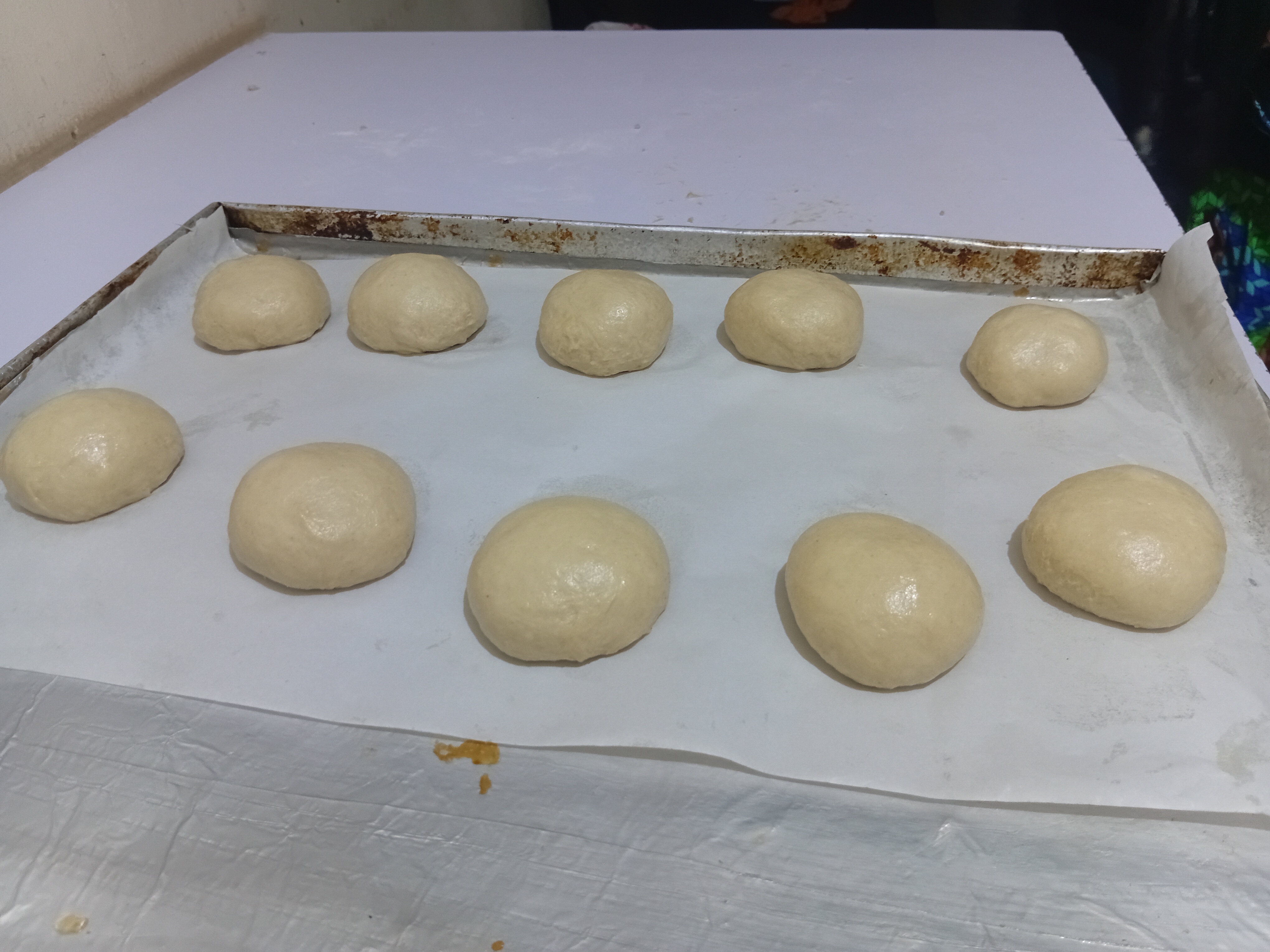 Then i cut out my dough in serveral portions of 90gram and molded it in balls before placing them on the tray. Then covered to rest for one hour.