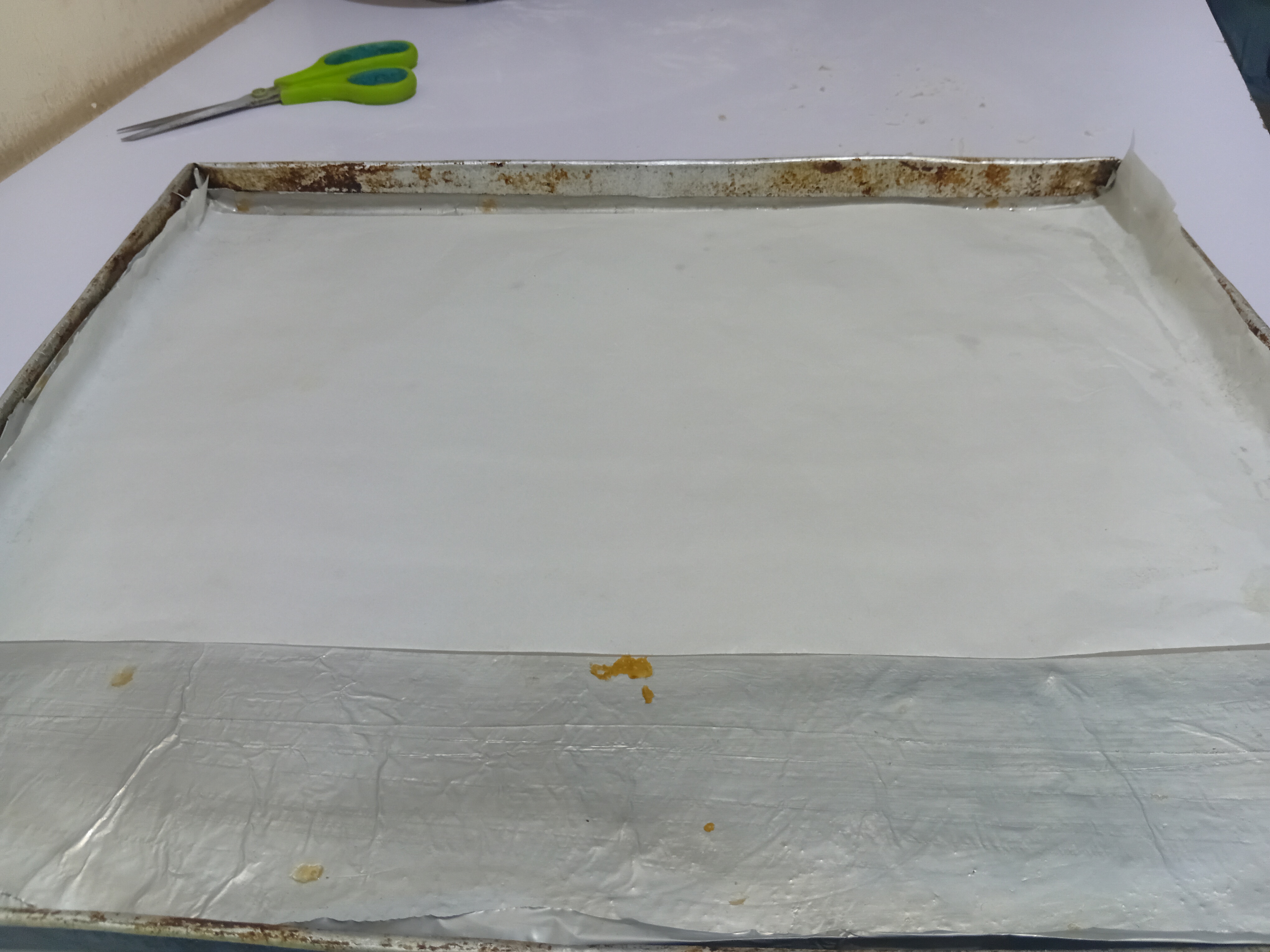 I placed a wax paper on my tray, spread the dough on the table and press out the air on the dough.