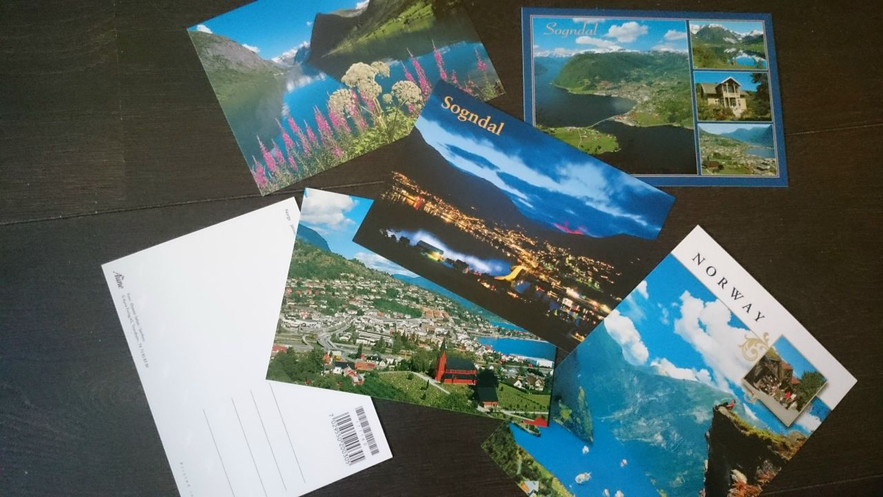 А это - просто туристические открытки, с видами на Сондал, самый крупный ~~город~~ поселок Согн-ог-Фьордане.