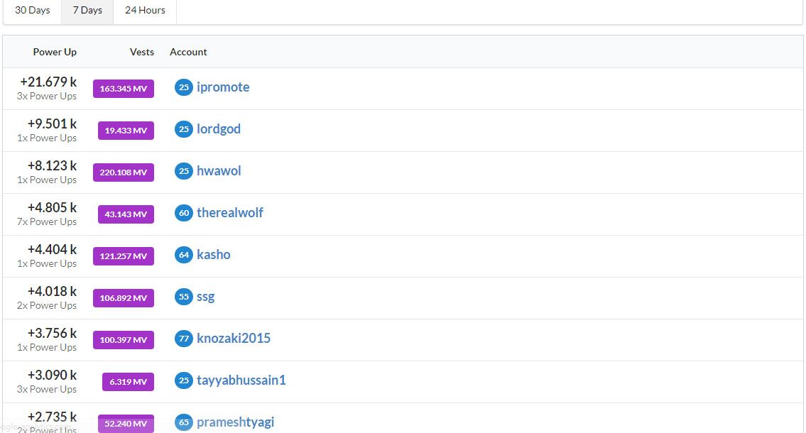 Top Power Up Statistics in Last 7 Days