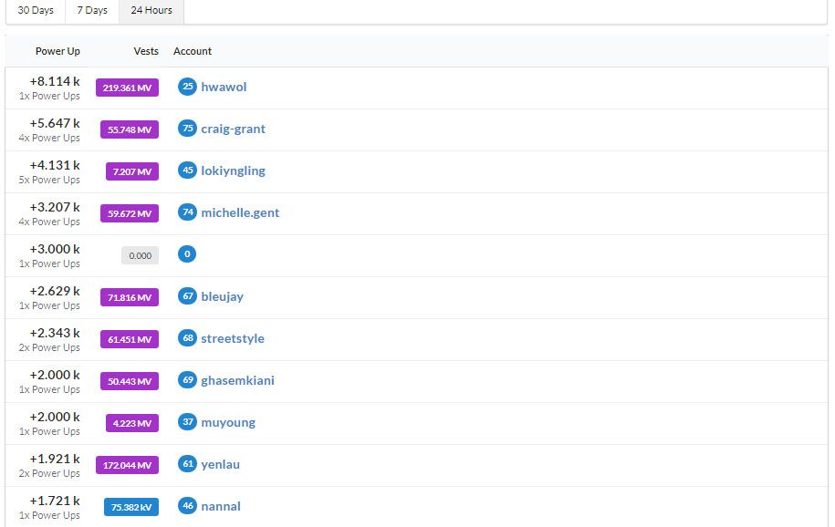 Completed Power Downs (Total powered down in the last week): 12,261,784 STEEM