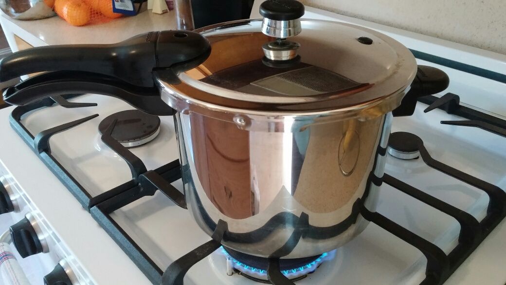 8. After an hour, turn the stove burner off and remove the pressure cooker to a safe area to cool. (When the pressure cooker is cool enough, the pressure will be released and the lid will safely open.)