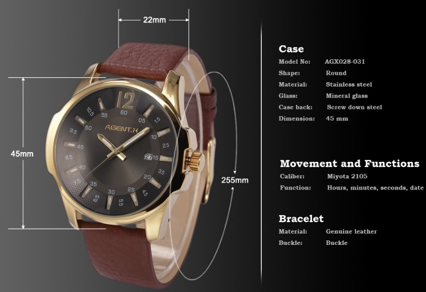- Japan made Miyota(Citizen Watch co., Ltd)movement inside.
