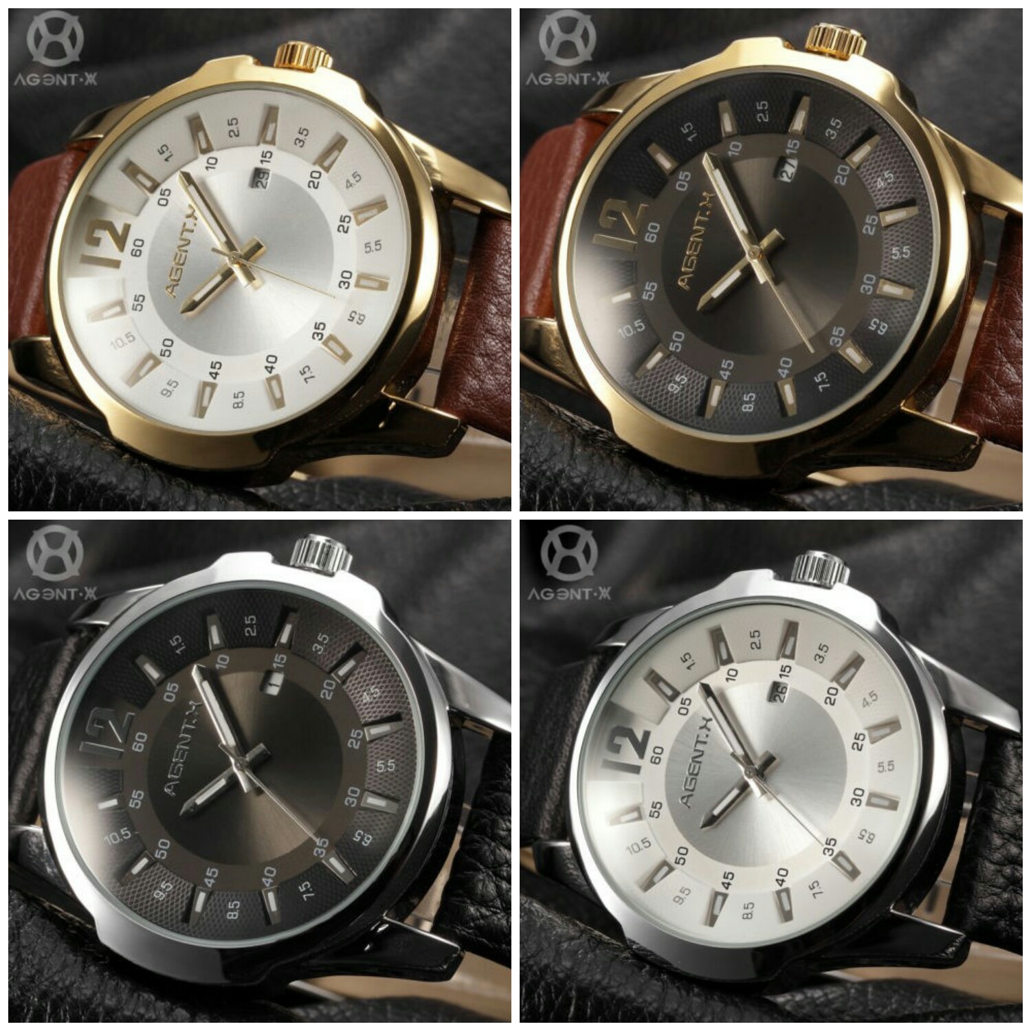 Luxury AgentX Mens Analog Sport Stainless Steel Quartz Date Leather Wrist Watch