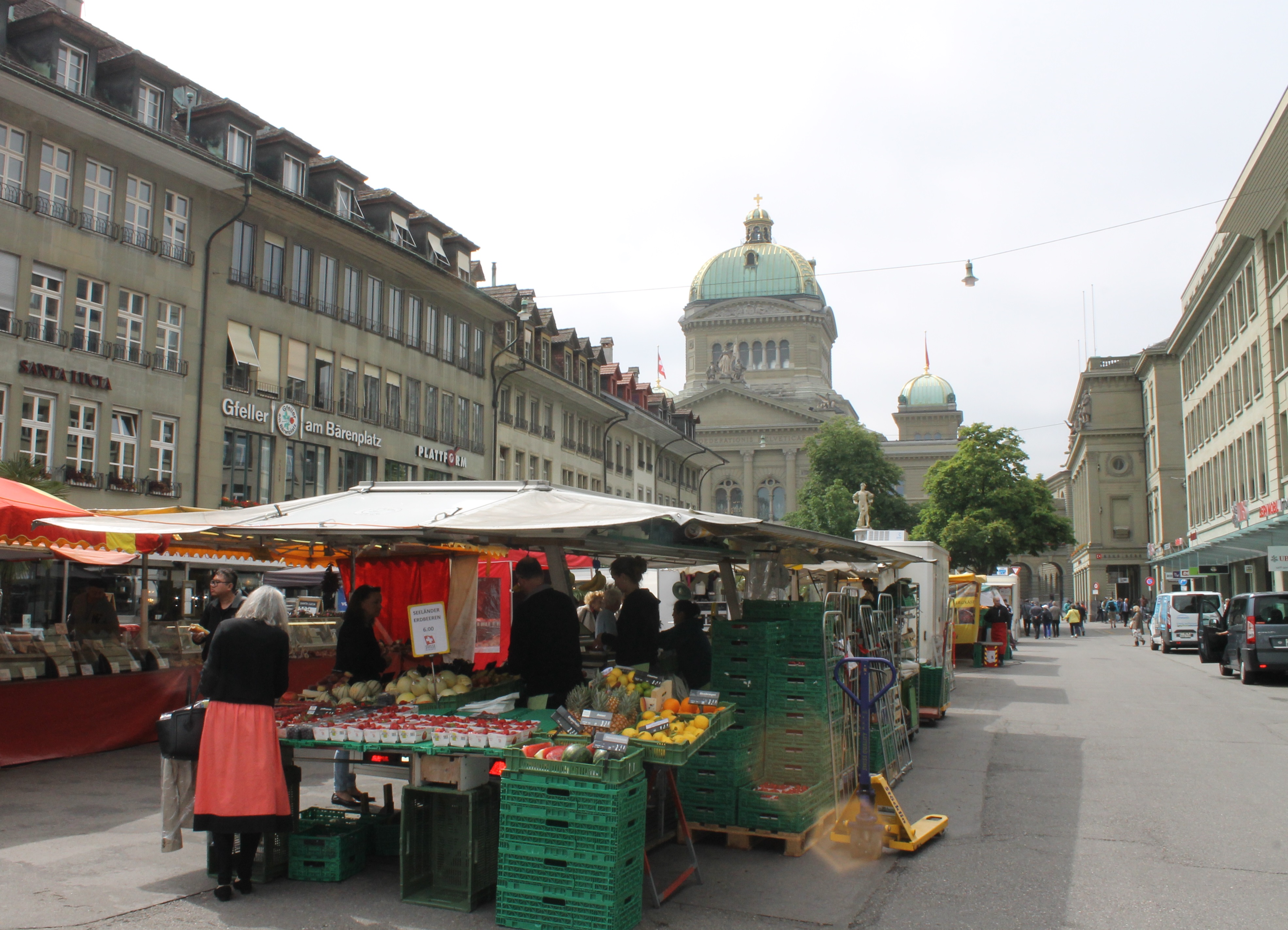 A walk across the market in Bern is exciting, the market stalls offer everything from flowers, fresh vegetables, fruit and food.