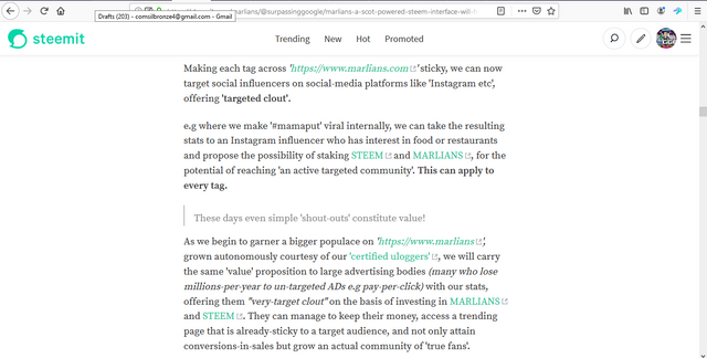 Marlians is a project emanating from the Teardrops ecosystem and carries similar tenets. It is a SCOT-enabled steem-interface that is opened to 'all content-type' and 'all locations', aiming at rewarding 'greatness' or 'true celebrity-hood'. Besides, it seeks to reward things like, 'display of human virtues', 'attempts at out-of-the-boxness', un(dis)talentedness, 'past deeds', 'activities that mine the human' etc