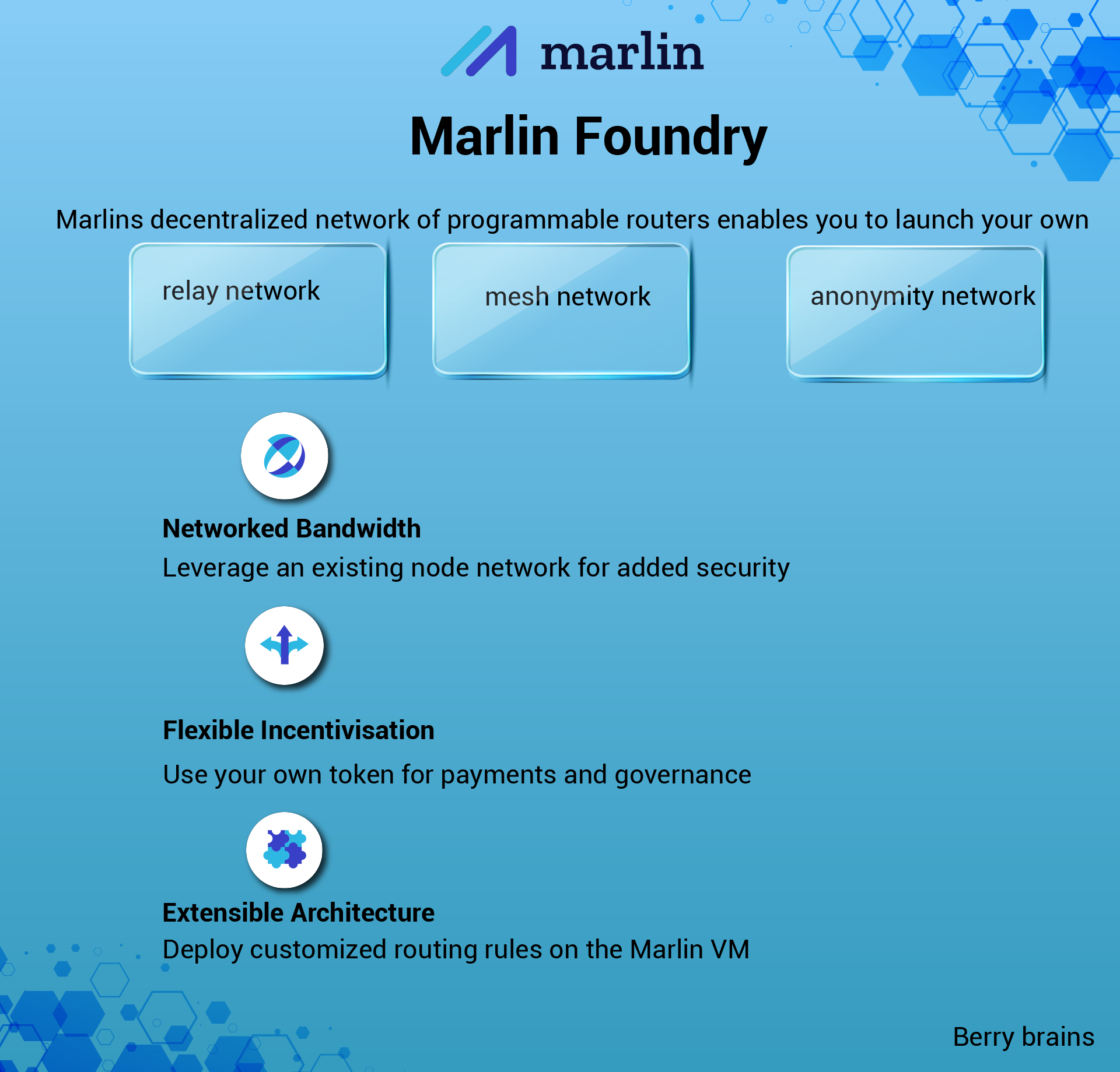 Marlin Foundryberrybrains (25)in #marlin • 5 years ago MarlinProtocol decentralized network of programmable routers enables users to launch their own Chaumian mixnet, VPN, relay network and more... Learn more about Marlin Foundry in the attached infographic.