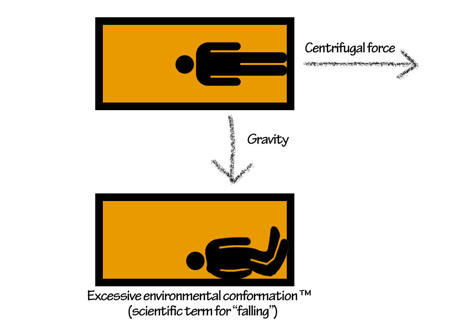 To prevent this from happening, we can take ideas from something that we have already designed: the carousel. In a cable carousel, the resulting force of both the centrifugal force and the gravitational force is pulling on each seat, orienting and keeping the people riding them in the correct alignment. We could do something similar by rotating the section, so that the forces combined to always be under the colonists' legs, realistically simulating natural gravity: