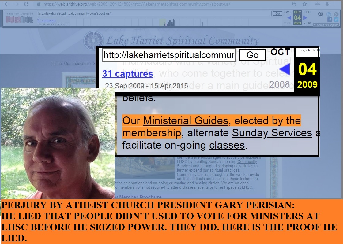 PERJURY BY GARY PERISIAN - ATHEIST CHURCH PRESIDENT SEIZED POWER AT LHSC