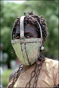 Masks were used in slave owning society as a symbol of not having a voice in society. Also as a means to stop crops from being eaten during work. And the worst one was a facemask with spikes, so one could not speak at all, this as a means to make slaves forget their native language.