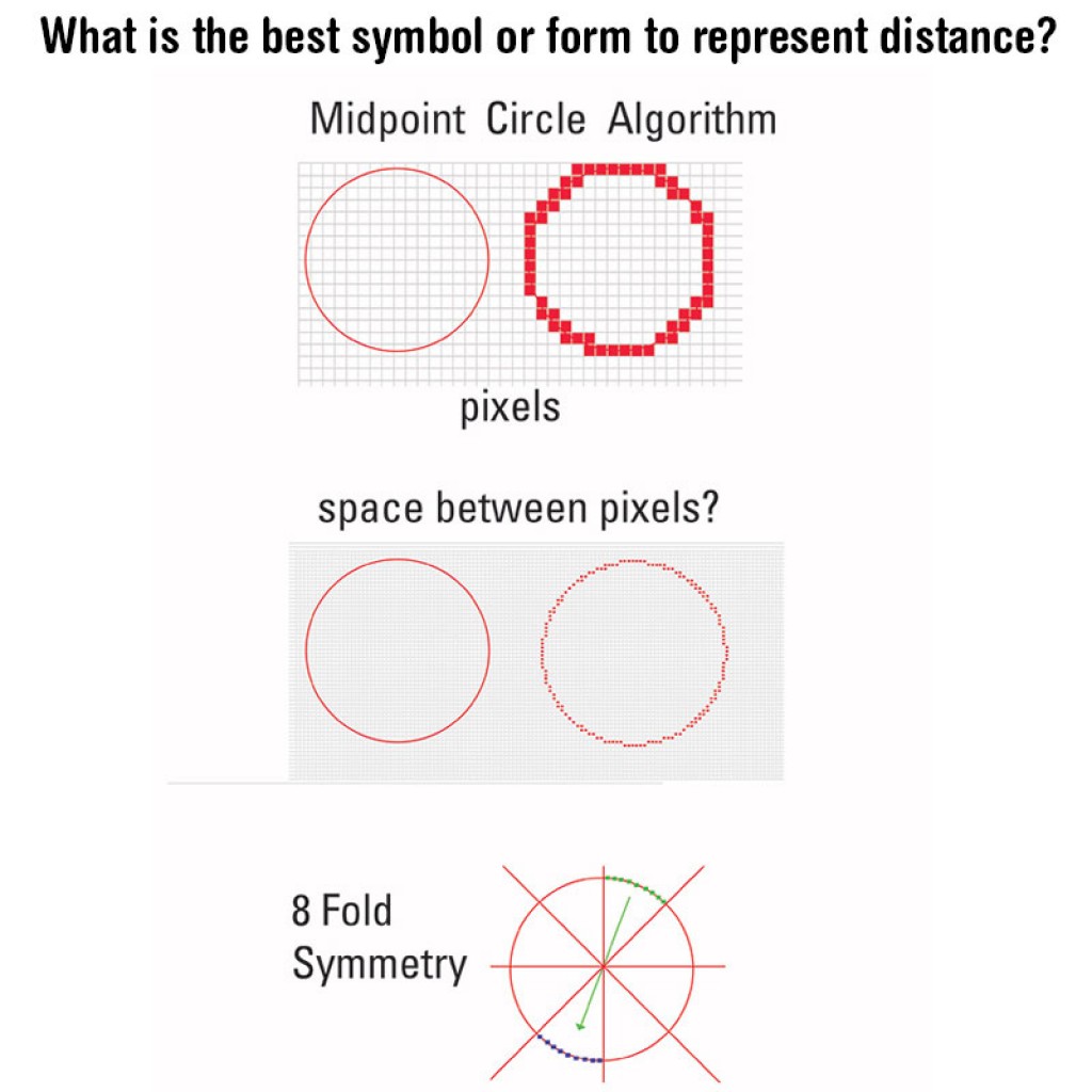 All spirals are concentric circles. On a computer screen the algorithm used to display a circle is the midpoint circle algorithm. The question is what is the space between the pixels? The human eye can only see so far, so big, so small. At some point the space between the pixels becomes insignificant. Or is there a way to build a kind of infinite fractal pixel, where no space exist in-between the pixels?