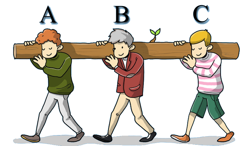 It depends. If for example C is the tallest than A and than B, A would have to carry more than C and B almost nothing.