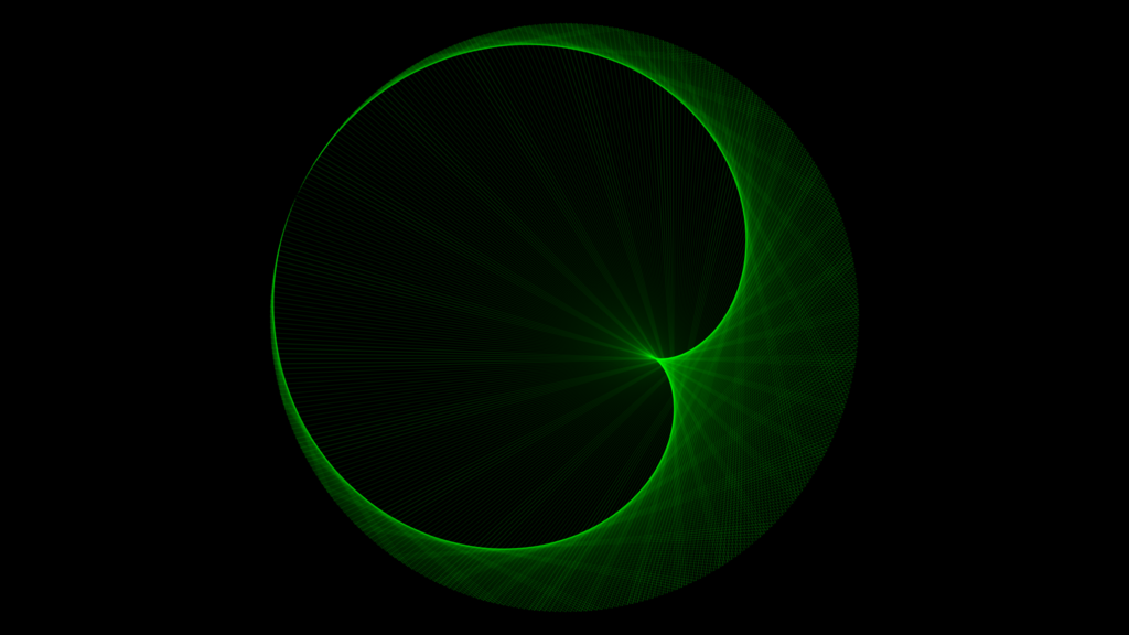 Making a pattern like this is actually quite simple, I started with a series of points spread round in a circle then started drawing straight lines between them doubling the number of the point so