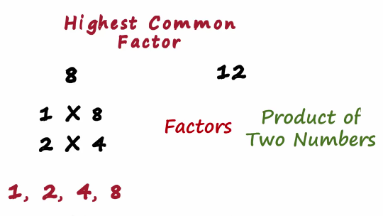 Look at the three wood Highest common and factor so let's first find the factors of numbers 8 and 12