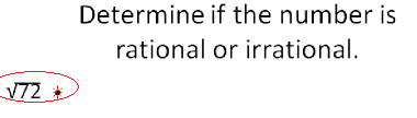 Now that we know what are irrational number is our job is to find if 72 is rational or irrational number to do that the first step is for us to actually factor the square root of 72