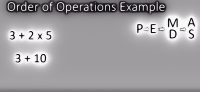 Well the order of operations tells us the correct order to do it look at it. First, we would look for parentheses I don't see any parentheses are no brackets or grouping symbols at all then I look for exponents we'll talk a little bit more about what those are later this question has addition and multiplication so let's go on to our next step multiplication comes first notice that we went parentheses, then exponents, then we hit our multiplication, division step so our multiplication and division would get done in this first step in other words, that's what gets done first so before we do 3 plus 2 we would do 2 times 5 which gives us 10.