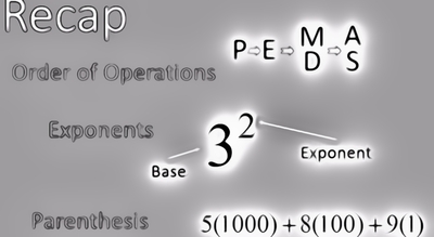 Let's take a look at it what we are going to do today is we're going to figure out what is order of operations and we'll talk specifically about two parts of the order of operations the exponents and the parentheses. Those parts attend to give us a little bit more trouble in future math classes so let's go ahead and get started..